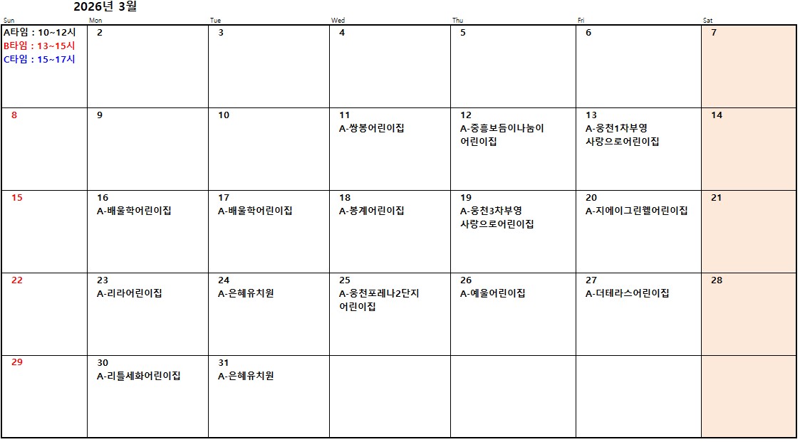 체험자유놀이실 3월, 4월 단체예약 현황 안내