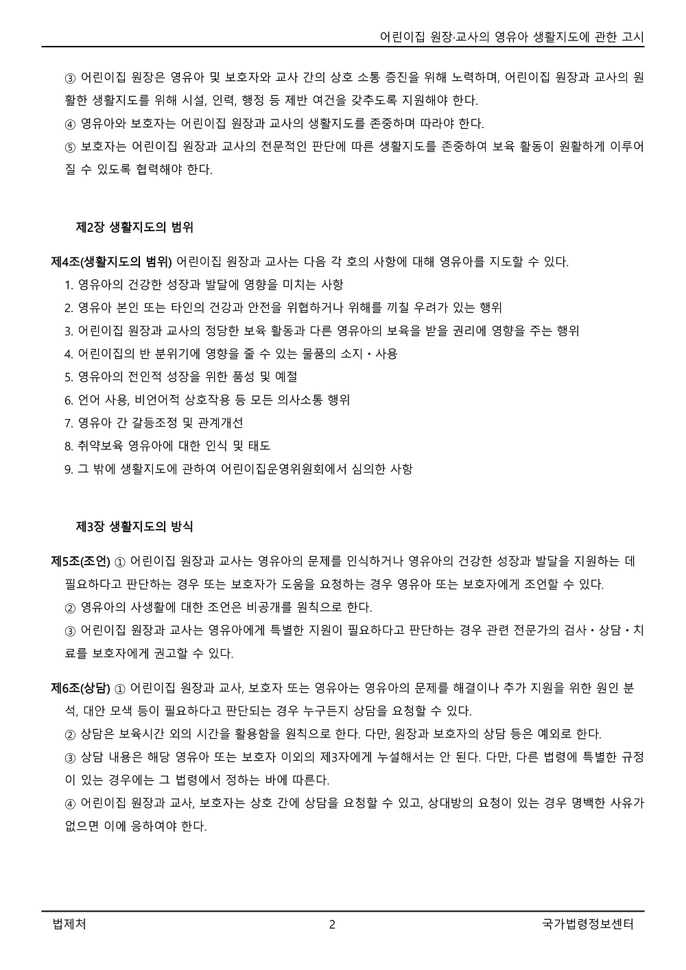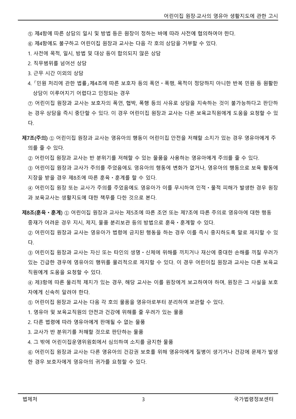 [교육부] 어린이집 원장·교사의 영유아 생활지도에 관한 고시