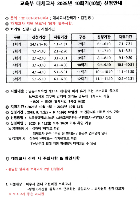 교육부 대체교사 2025년 10회기(10월) 신청안내