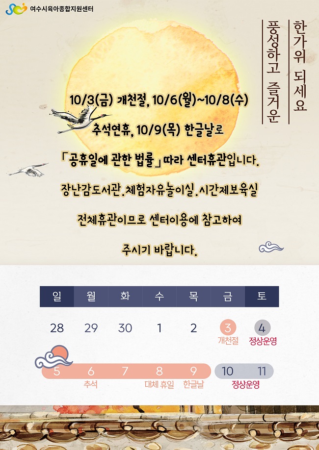 2025년 여수시육아종합지원센터 가정양육지원사업 세부일정 안내
