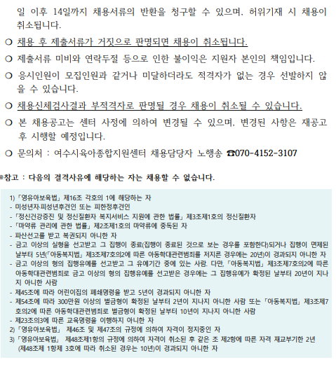 [제2026-004호]여수시육아종합지원센터 직원 채용 공고의 건