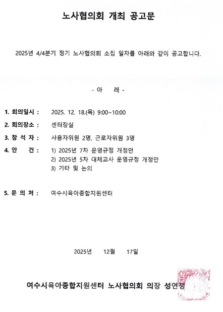 [공고 2025-010호] 노사협의회 4분기 개최 공고문