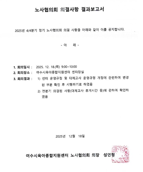 [제2026-001호]여수시육아종합지원센터 직원 채용결과