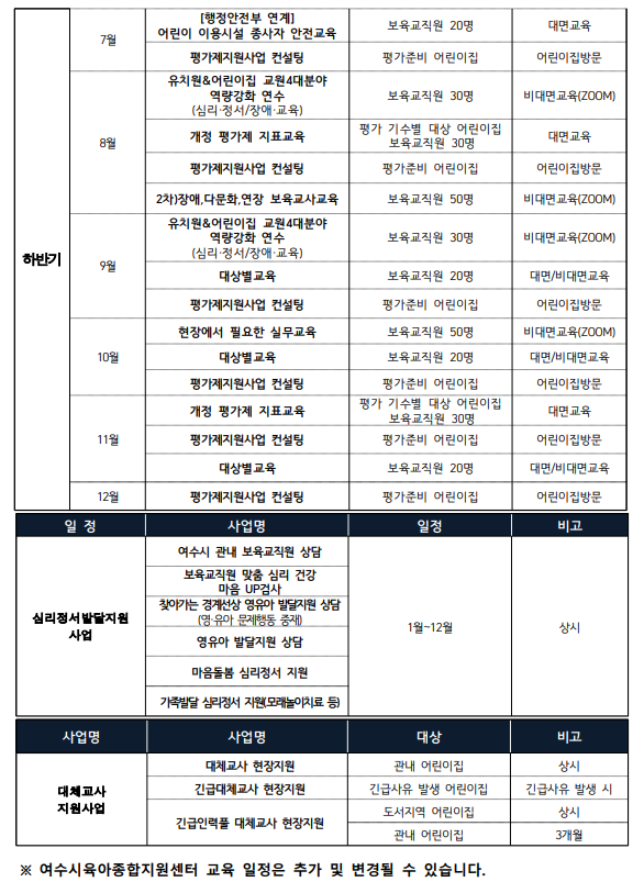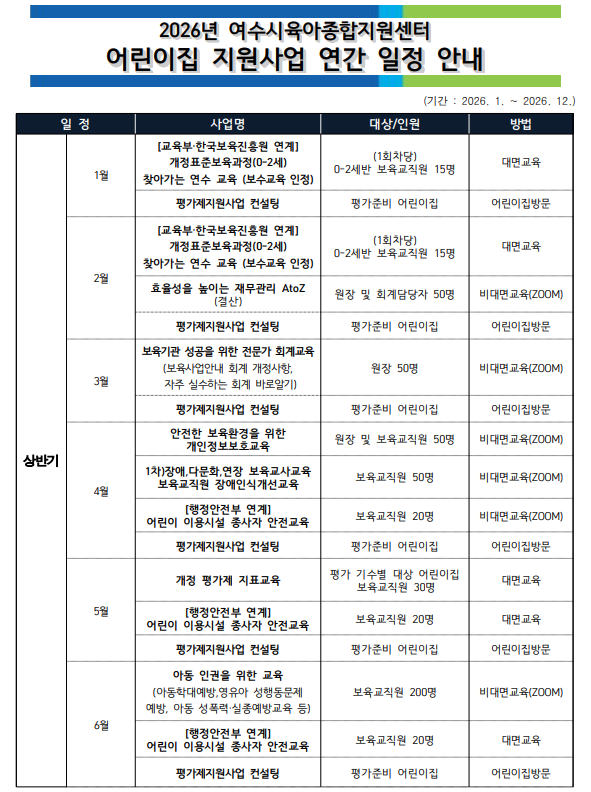 2026년 여수시육아종합지원센터 어린이집지원사업 연간일정 안내 (26.1.12기준)