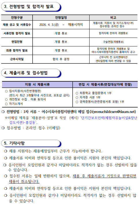 [제2026-007호]여수시육아종합지원센터 직원 채용 공고의 건