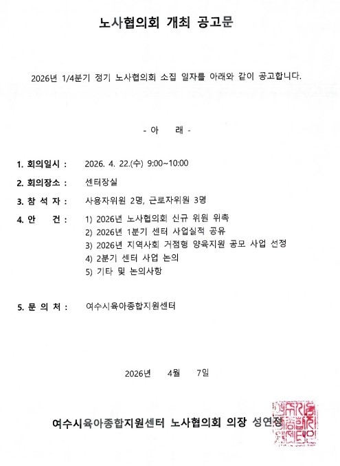 [제2026-006호]여수시육아종합지원센터 직원 채용결과