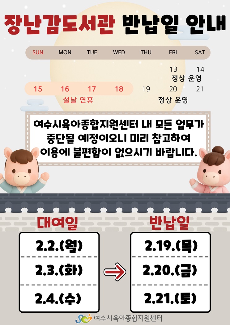 2024년 장난감도서관 설 연휴 휴관 및 반납일 변경안내